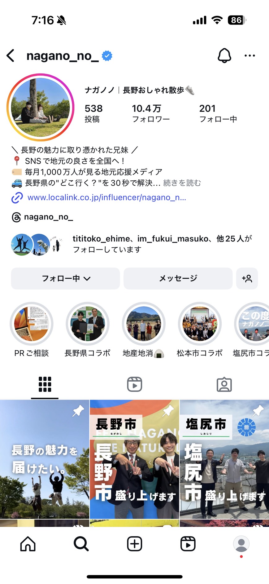 ナガノノは「長野県の魅力をもっと届ける」を叶えるために活動しております。SNSでの発信はもちろん、旅に関することや地域おこしに関することなど、お力になれることは何でも考えていきます。