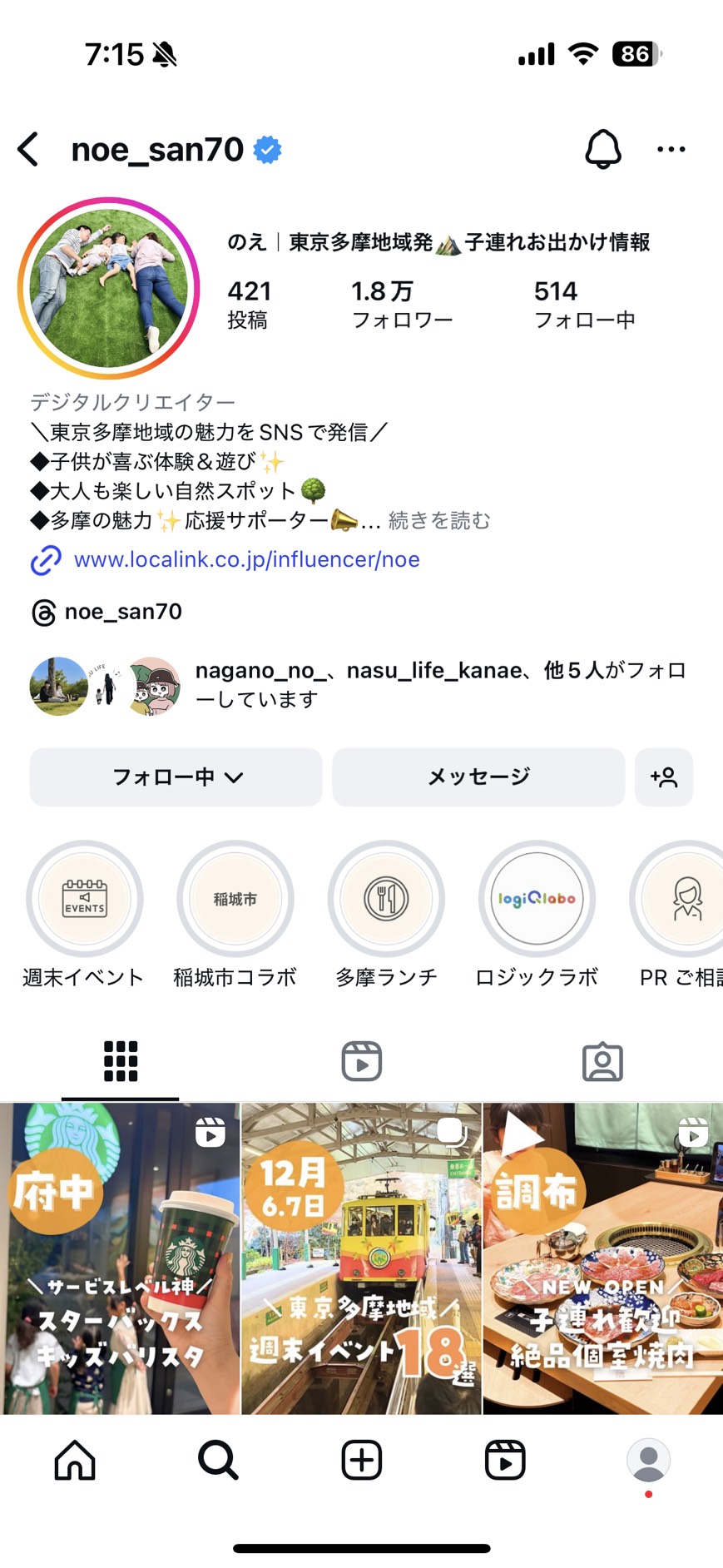 だからこそ、もっと多くの人に、このリアルな「多摩地域の魅力」を伝えたい。そんな想いから立ち上げたのが、地域密着型Instagram「のえ」のアカウントです。