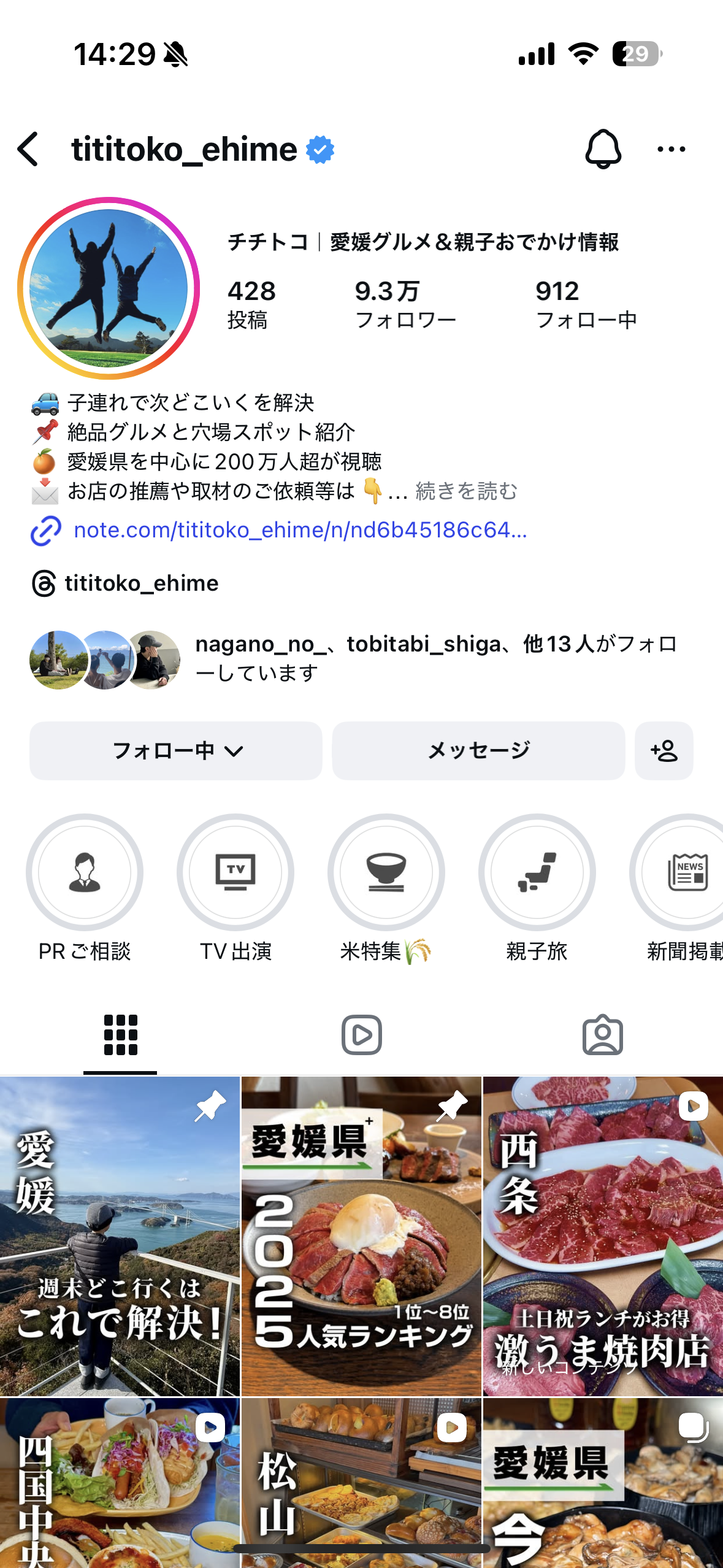 総フォロワー数10万人を超える当アカウントにて、飲食店様や宿泊施設様、観光スポットなどをリール動画やストーリーズを使用してPRいたします。支援先の事業者様からは「過去最高売上を達成」「1回のPRでフォロワー数が1000以上増加」「連日の行列」「テレビ取材の実現」など、嬉しいご報告を多数いただいております。ぜひお気軽にお問い合わせください。